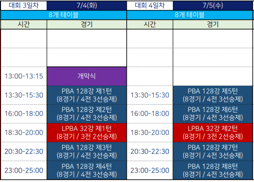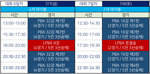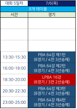 LPBA 4강전은 8일 오후 5시30분부터 진행된다. 경기도 안산시 상록수체육관에서 열리는 이번 대회는 전 경기 무료 관람이 가능하다.