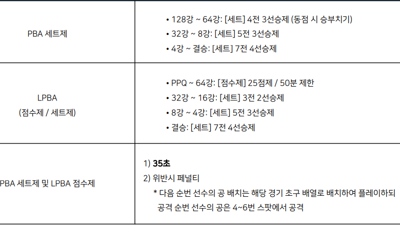 ◆ LPBA 점수제 경기 초구 포메이션(3-5-9), PBA 는 뱅킹 방식