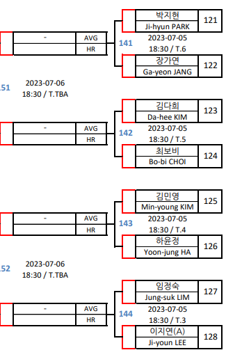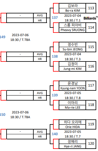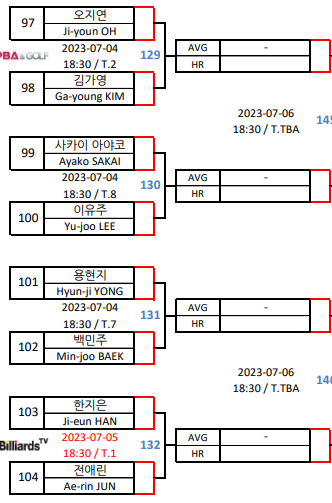일요일 월요일 양일간 LPBA 예선 PPQ, PQ라운드와 64강이 치뤄졌습니다. 그리고 치열한 경쟁을 뚫고 32강에 합류한 선수들의 대진표를 올립니다. 면면히 넘치는 실력들을 뽐내며 32강에 안착한 선수들을 축하합니다.