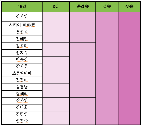 6세트 이제 용현지선수에게는 마지막 기회! 용현지선수의 결코 질수없다는 강한 의지가 돋보이는 세트였네요. 행운의 점수도 2번이 있었지만 완벽하게 잘 치고 이겼네요. 마지막 두꺼운 구멍 치기는 참 짜릿했습니다.