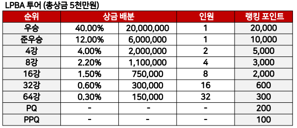 (종료.2투어)안산 LPBA 32강, 16강, 8강, 준결승, 결승 대진표