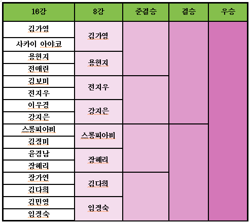 용현지선수를 많이 응원했는데 제게는 조금 아쉬운 경기가 되었네요. 새로운 우승자가 나올줄 알았는데 스롱피아비의 아성이 너무 큰 모양입니다. 대체적으로 스롱은 잘하는것도 있지만 때마다 결정적 행운샷도 많은거 같아요.