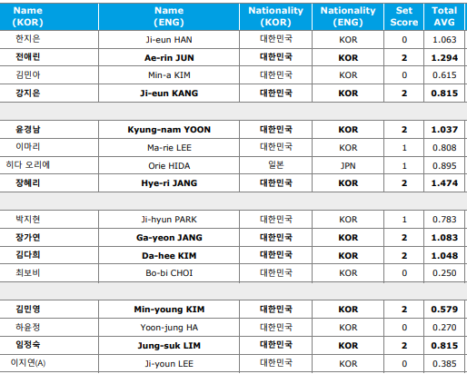 ◆ LPBA 32강 1일차 결과(승수, AVG)