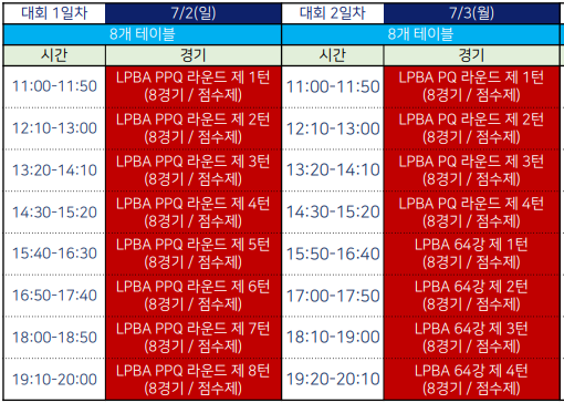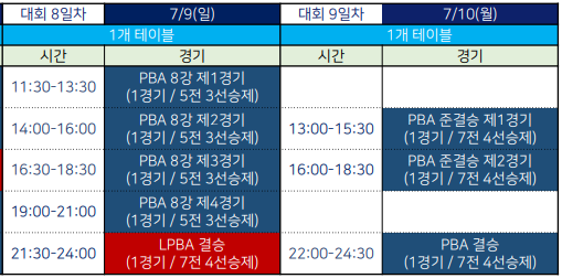LPBA 결승전은 9일 밤 9시30분부터 진행된다. 경기도 안산시 상록수체육관에서 열리는 이번 대회는 전 경기 무료 관람이 가능하다.